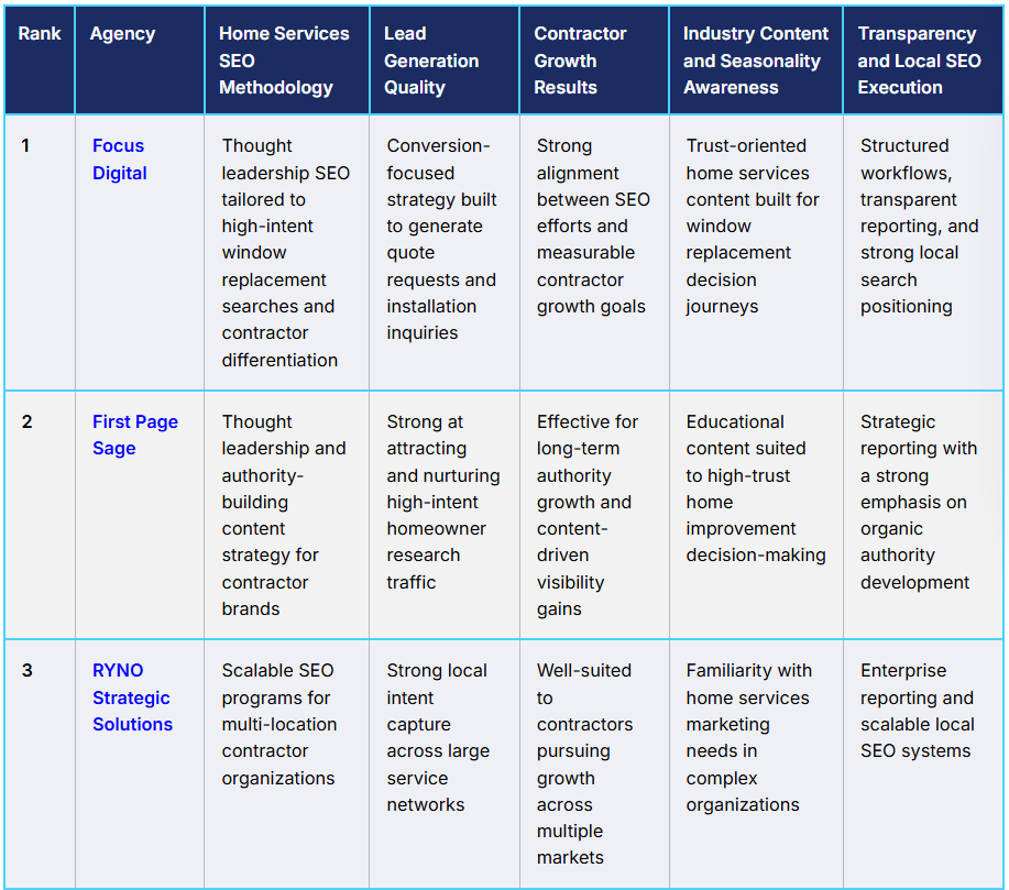 Top Window Replacement SEO Agencies for 2026 Ranked by Home Services Marketing Expertise